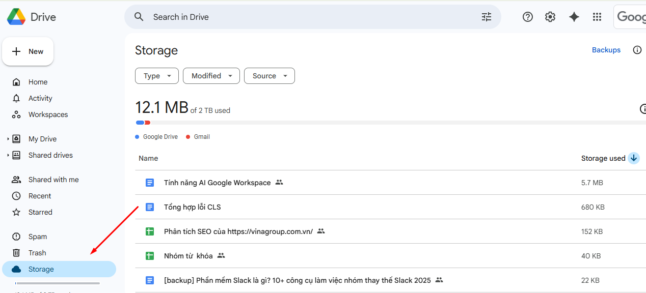Trước khi bắt đầu dọn dẹp, bạn cần xác định chính xác đâu là những tệp đang chiếm nhiều dung lượng nhất. Việc này giúp bạn ưu tiên xóa đúng thứ cần xóa, tiết kiệm thời gian, giải phóng được nhiều dung lượng và sử dụng Google Drive hiệu quả hơn.