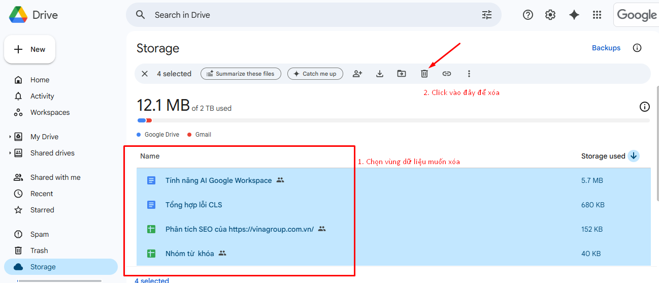 Nếu bạn cần lấy lại dung lượng ngay lập tức, dưới đây là những cách giải phóng bộ nhớ trên Google Drive hiệu quả nhất giúp dọn sạch chỉ trong vài phút. Đây là các thao tác ưu tiên, có thể giải phóng hàng GB mà không tốn nhiều thời gian.