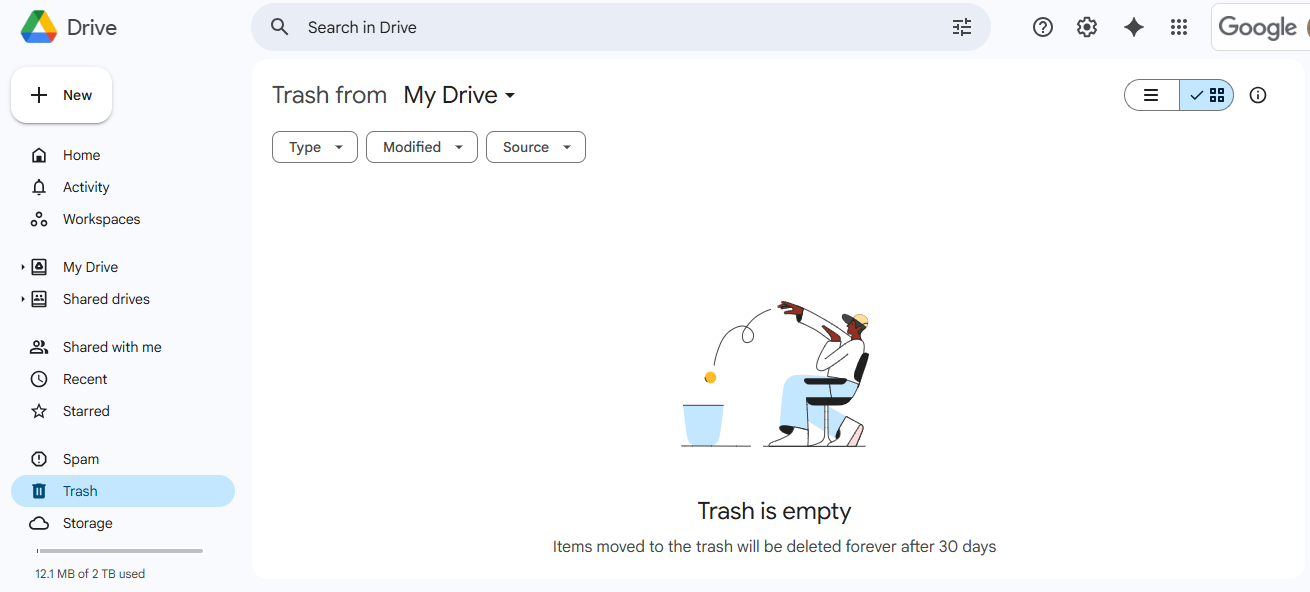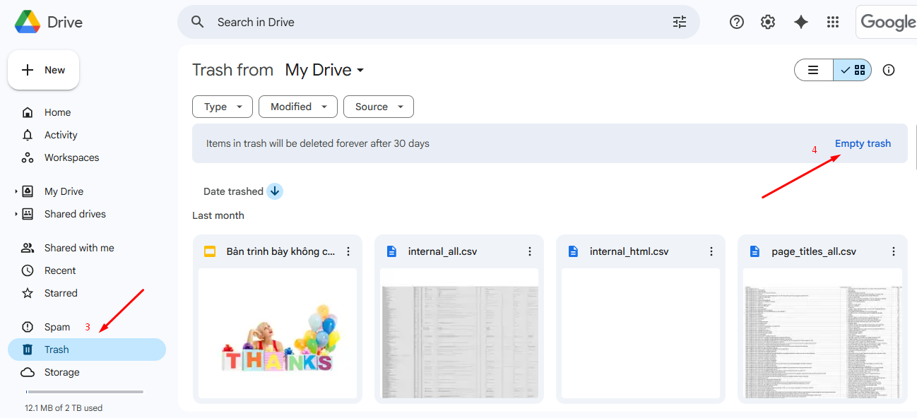 Nhiều người nghĩ rằng chỉ cần bấm “Delete” là xong, nhưng Google Drive chỉ xóa vĩnh viễn khi bạn dọn thùng rác.