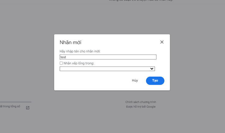 Vậy là bạn đã tạo 1 nhãn mới thành công. Có một lưu ý nhỏ là bạn hoàn toàn có thể tạo nhãn lồng trong cha - con bằng cách tích vào ô Nhãn xếp trong lồng và chọn nhãn cha ở mục phía dưới.