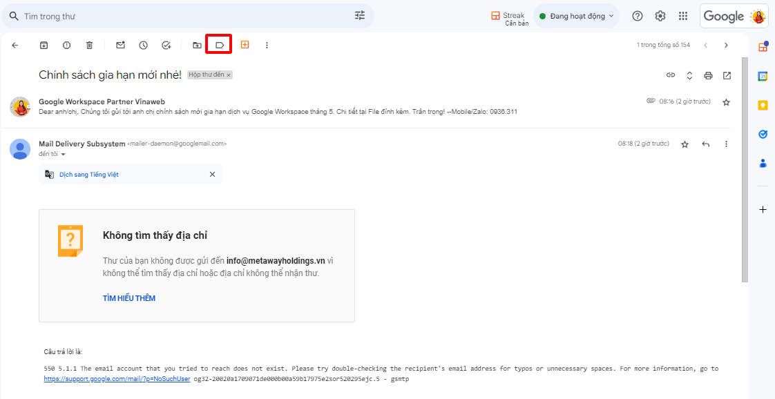 Bước 1: Mở email bạn muốn gắn nhãn và nhấp vào biểu tượng Nhãn ![]()