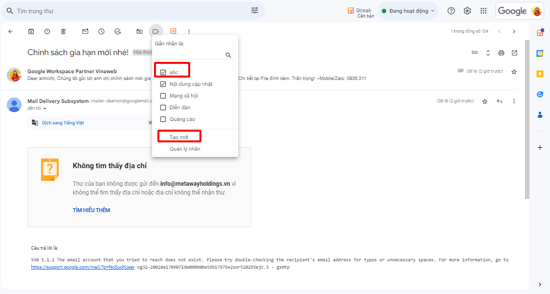 2. Cách áp dụng nhãn cho email