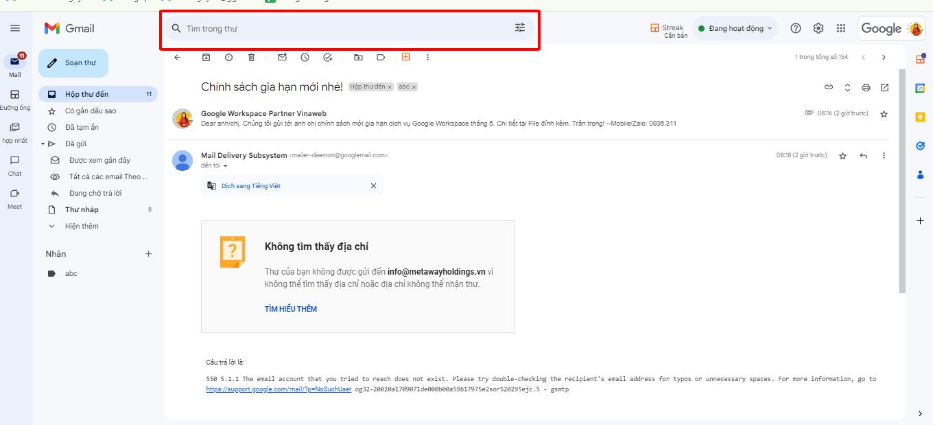 Vinaweb - Đối tác chính thức của Google tại Việt Nam chuyên cung cấp các gói Google Workspace giá đại lý giảm tới 52% với khách hàng mới và giảm tới 48% với khách hàng gia hạn.