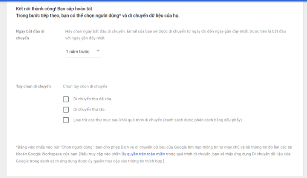 Quá trình chuyển dữ liệu từ gmail cá nhân sẽ diễn ra, thời gian tùy thuộc vào số lượng email của mail nguồn.