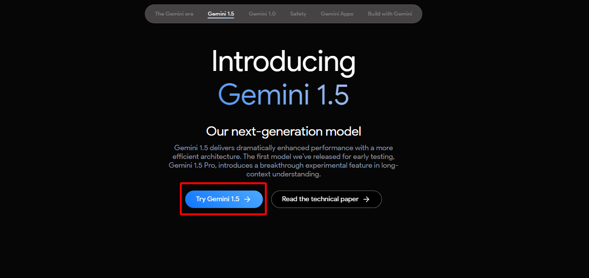 - Bước 4: Chọn Try "Gemini 1.5 ->"
