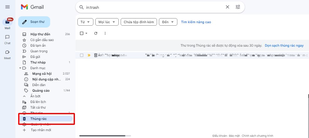 Bước 3: Nhấp vào Thùng rác và xác nhận rằng bạn muốn xóa email. Thận trọng: Sau khi email bị xóa vĩnh viễn ở bước tiếp theo, bạn không thể khôi phục chúng.