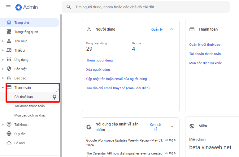 Để kiểm tra gói Google Workspace đang sử dụng đang đăng ký theo tháng, theo năm hay gói linh hoạt bạn phải là quản trị viên cấp cao (Super admin) mới có thể truy cập Trung tâm quản trị Google Workspace và xem thông tin gói đăng ký.