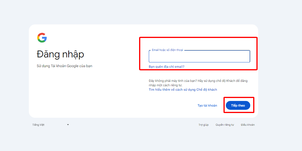 Bước 1: Mở trang đăng nhập Google Workspace. Nhập tên người dùng hoặc địa chỉ email của bạn và nhấp vào Tiếp theo.