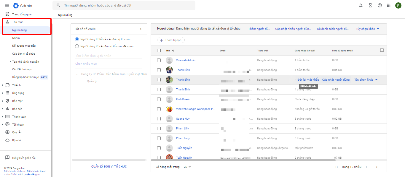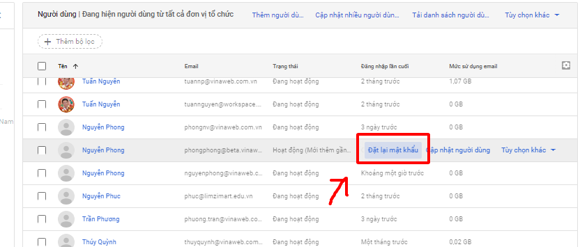3.1. Để đặt lại mật khẩu người dùng trong Google workspace dành cho user bạn làm theo các bước sau: