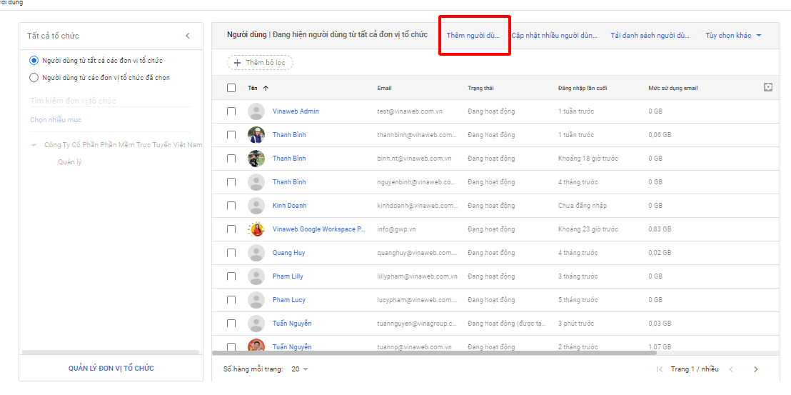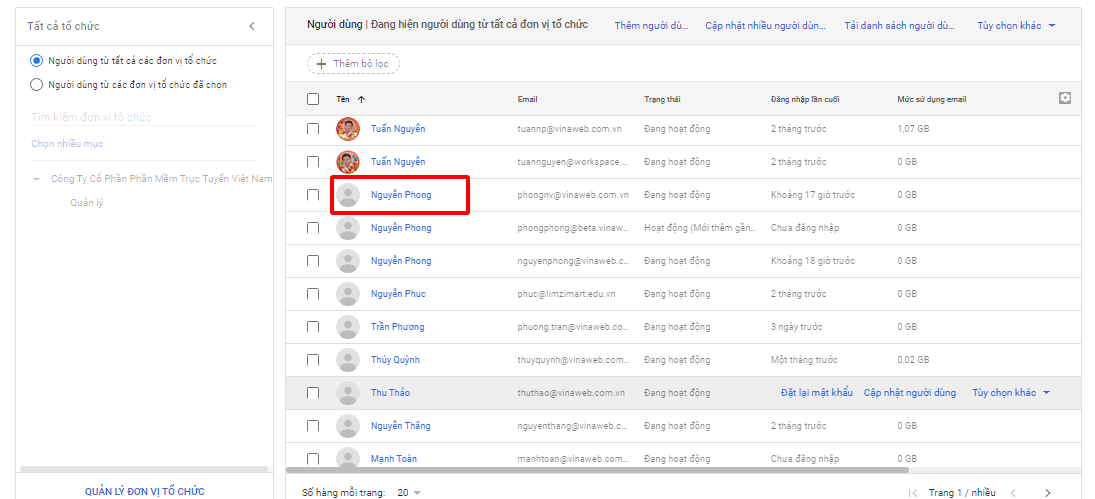 Bước 2: Chọn người dùng bạn muốn thêm alias email