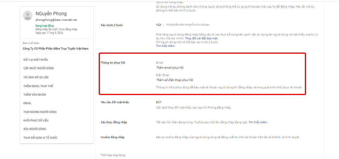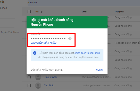 Bước 1, 2, 3 bạn làm theo cách đổi mật khẩu người dùng trong Google Workspace phía trên.