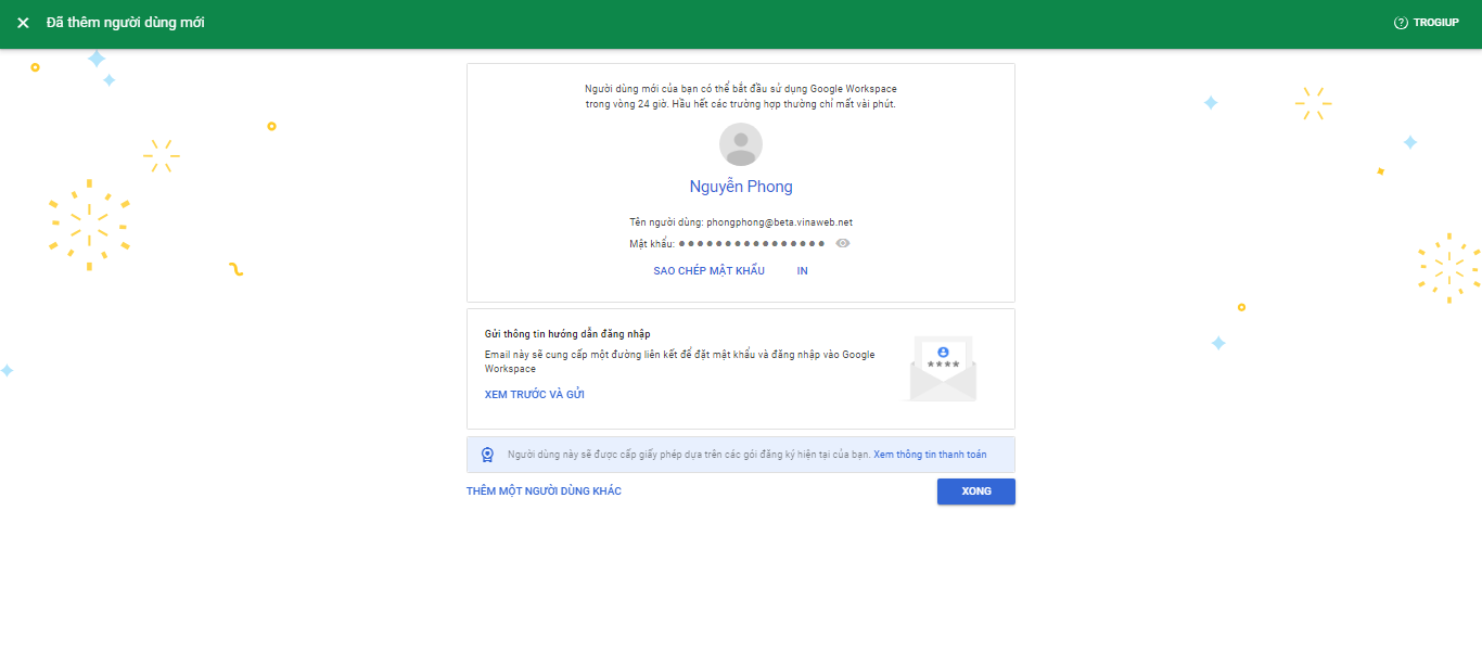 Bước 6: Hoàn tất tạo người dùng:
