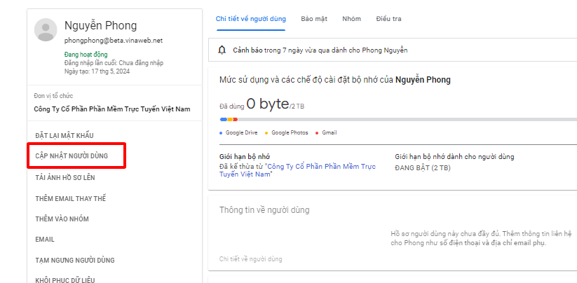 Bước 7: Chọn "Cập nhật người dùng"