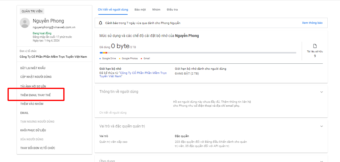 7. Thêm hoặc thay đổi quản trị viên tài khoản Google Workspace