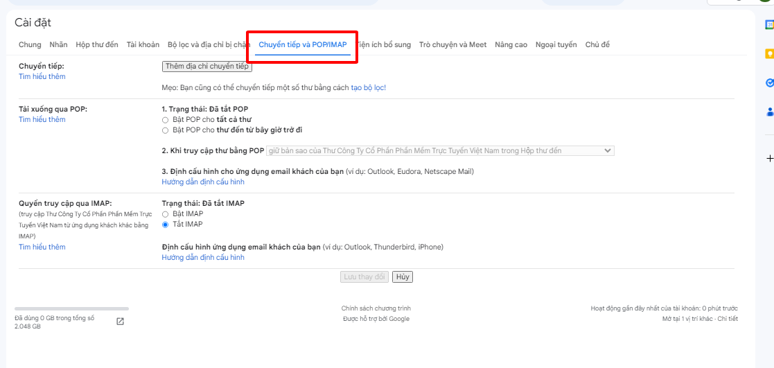 Bước 2: Chọn tab Chuyển tiếp và POP/IMAP.