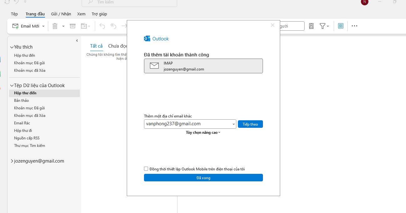 11.2. Thêm tài khoản Gmail vào Outlook