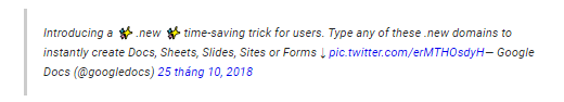 wwwtrước địa chỉ tên miền .new. - Google đã đăng ký nhiều biến thể cho mỗi dịch vụ, vì vậy bạn có thể sử dụng các địa chỉ sau để tạo tài liệu mới: