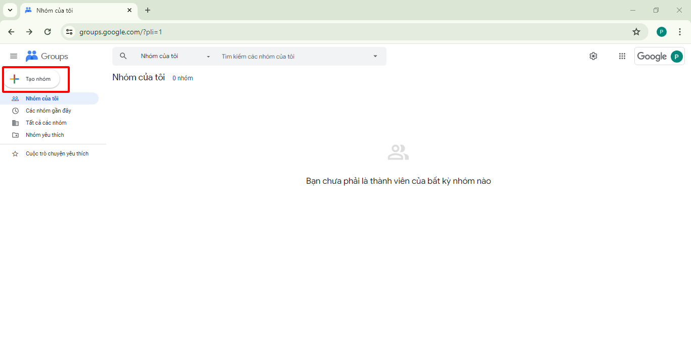 Bước 2: Ở trên cùng, nhấp vào Tạo nhóm.