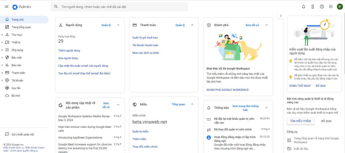 - Bước 1: Truy cập https://admin.google.com/.