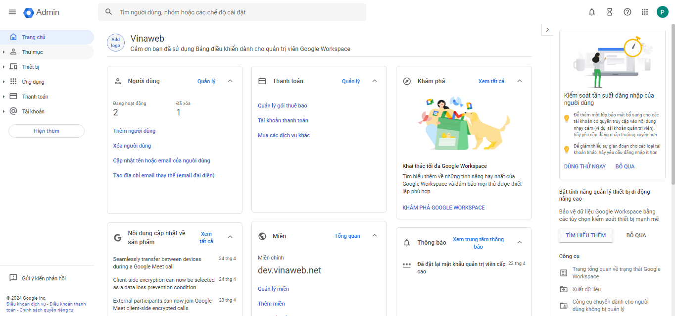 Vinaweb - Đối tác chính thức của Google tại Việt Nam chuyên cung cấp các gói Google Workspace giá đại lý giảm tới 52% với khách hàng mới và giảm tới 48% với khách hàng gia hạn.