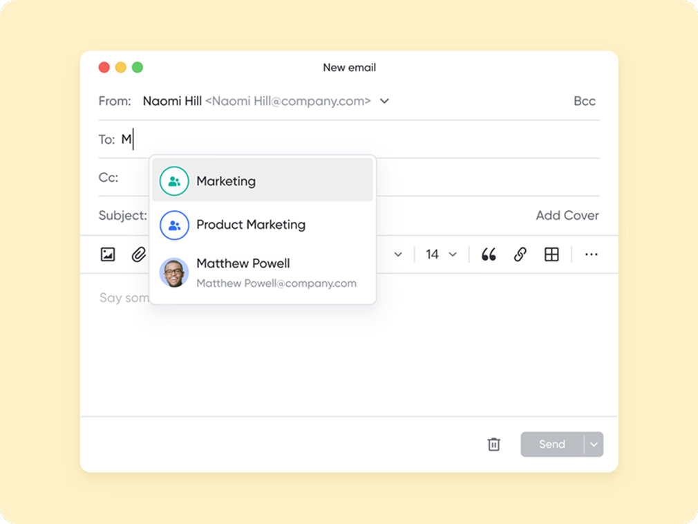 Lark Mail hỗ trợ sử dụng địa chỉ email theo tên miền riêng của doanh nghiệp (ví dụ: name@yourcompany.com), giúp xây dựng hình ảnh chuyên nghiệp và thống nhất trong mọi hoạt động giao tiếp với đối tác, khách hàng.