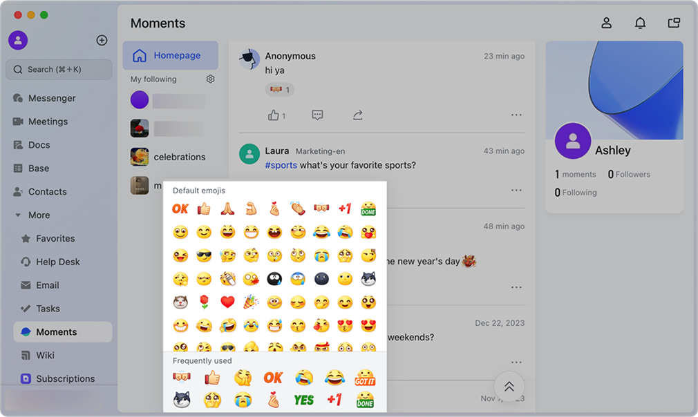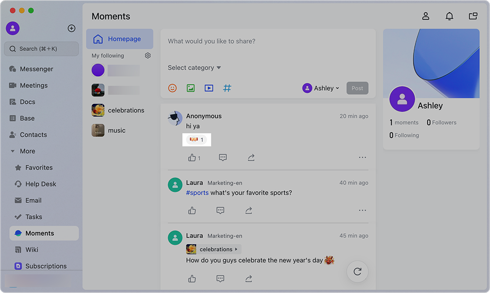 Lark Moments ra đời như một mạng xã hội nội bộ được tích hợp sẵn trong Lark, nơi nhân viên có thể chia sẻ tin tức nội bộ, những khoảnh khắc đời thường, hoạt động đội nhóm hay các câu chuyện truyền cảm hứng. Thay vì phải sử dụng các nền tảng bên ngoài, mọi tương tác đều diễn ra ngay trong không gian làm việc chung, an toàn và có kiểm soát.