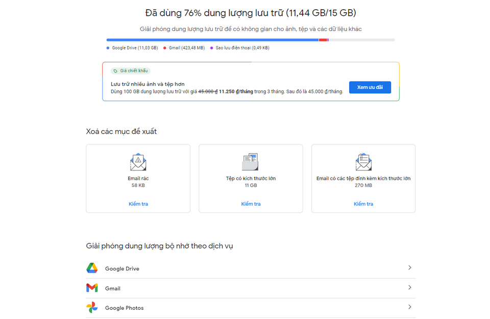 - Quản lý lưu trữ: Google thường cung cấp các công cụ để quản lý dung lượng lưu trữ, giúp bạn theo dõi dung lượng đã sử dụng và xóa các tệp không cần thiết.