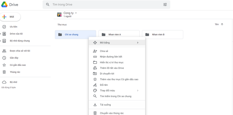 Giới hạn số mục trong thư mục "My Drive"