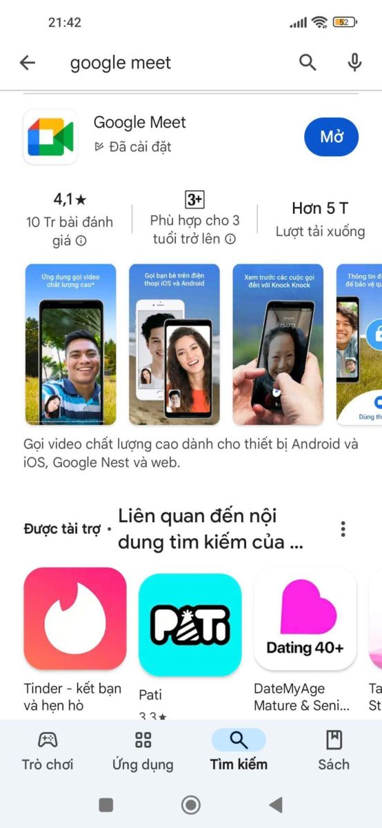 - Bước 1: Tải và cài đặt ứng dụng Google Meet từ Google Play hoặc App Store.