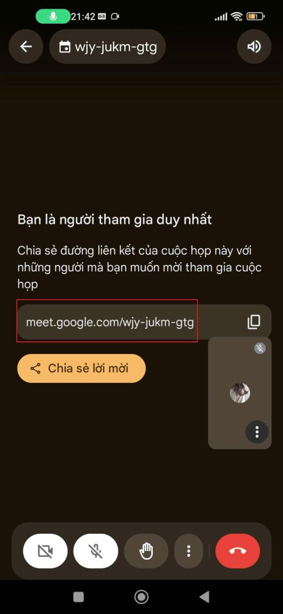 - Bước 3: Sau khi phòng họp được tạo, bạn có thể mời người tham gia bằng cách gửi liên kết hoặc nhập email người tham gia.