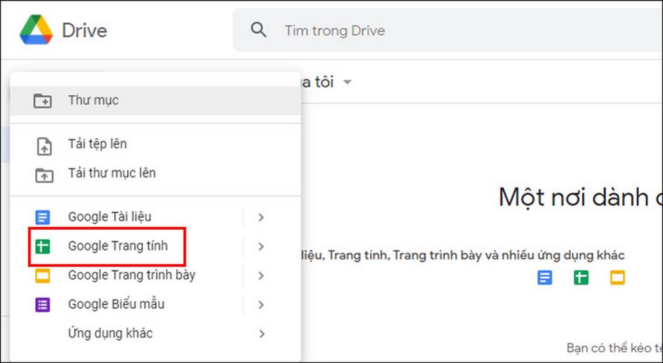 - Để truy cập tính năng Sheet thì bạn hãy vào Google Drive và chọn mục Mới.