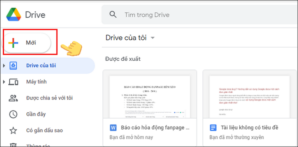 - Để tạo tài liệu mới thì bạn cần truy cập vào Google Drive, sau đó nhấn chọn Mới.