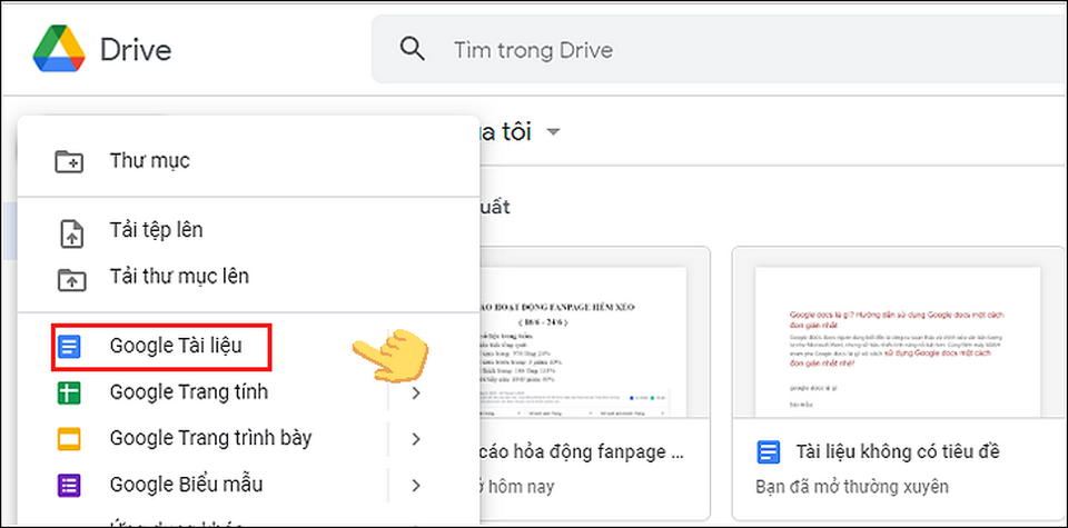 - Quan sát màn hình và tiếp tục chọn Google tài liệu.