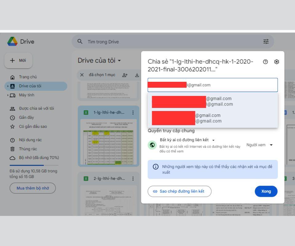 - Bước 3: Nếu muốn chia sẻ cụ thể với ai, nhập email của họ vào thanh "Người nhận" và tùy chỉnh quyền truy cập (chỉnh sửa, nhận xét, xem).