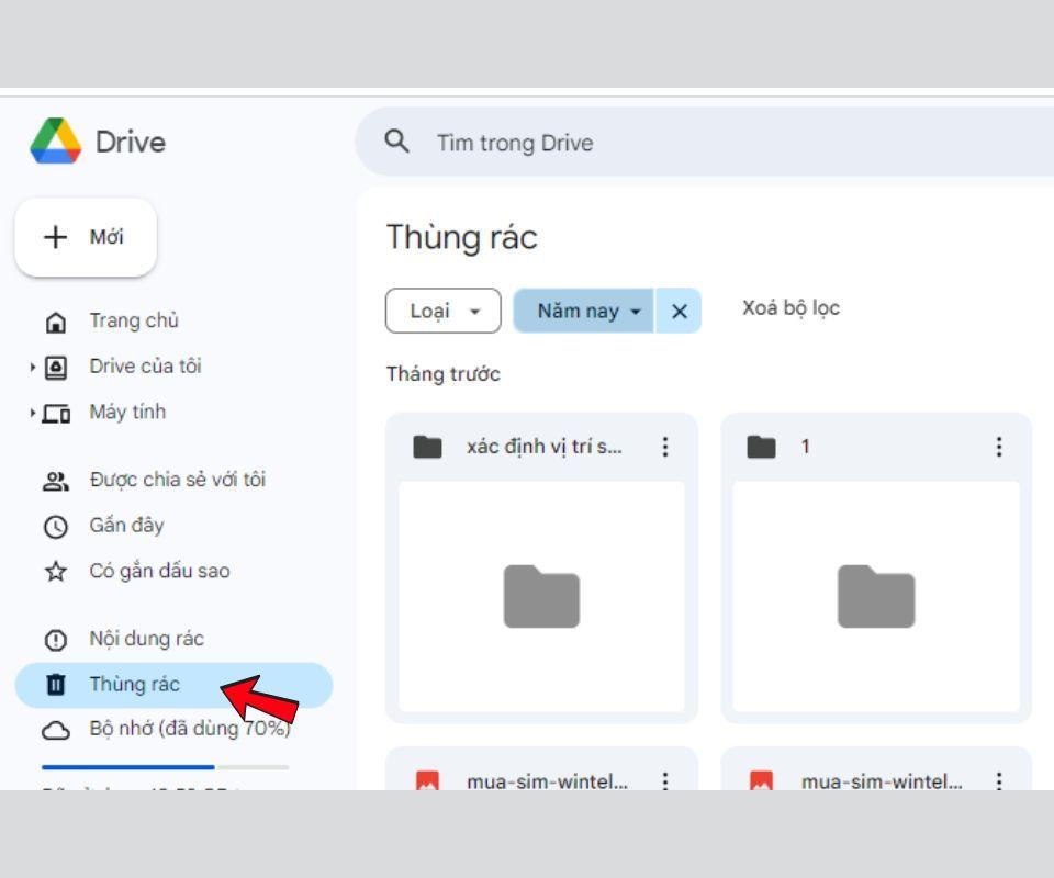 Truy cập vào thùng rác của Google Drive