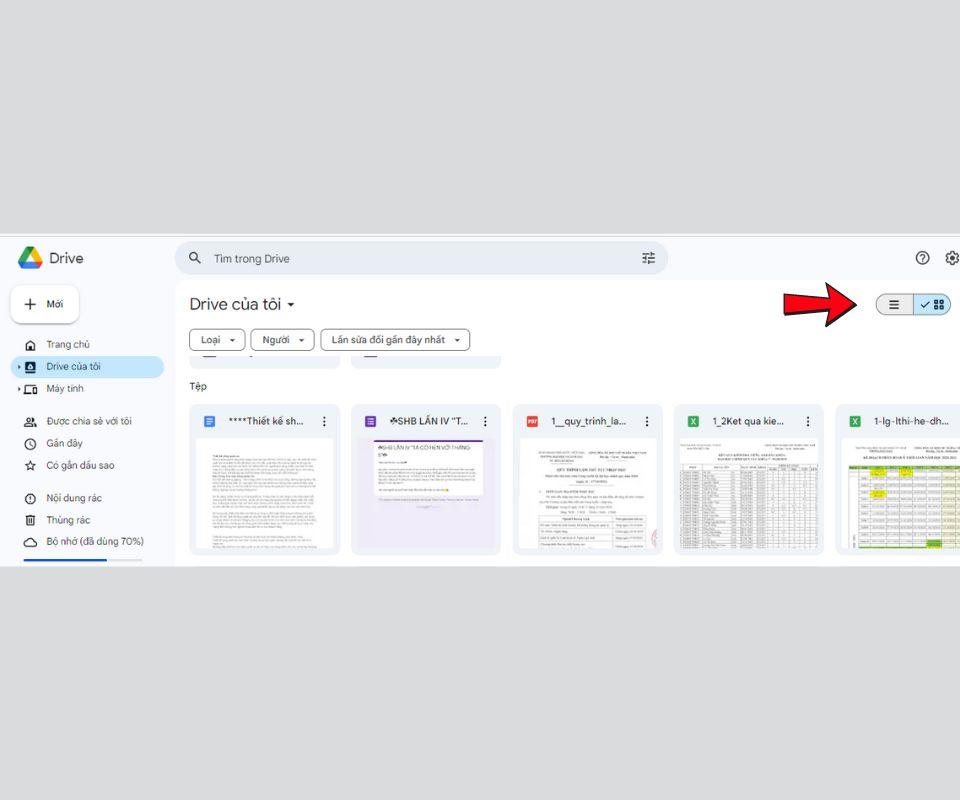 Việc tùy chỉnh giao diện Drive cũng giúp nâng cao trải nghiệm và hiệu quả làm việc. Google Drive cung cấp hai dạng xem tệp tin: