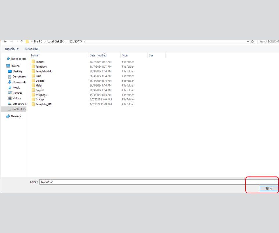 Vào thư mục muốn tải dữ liệu lên