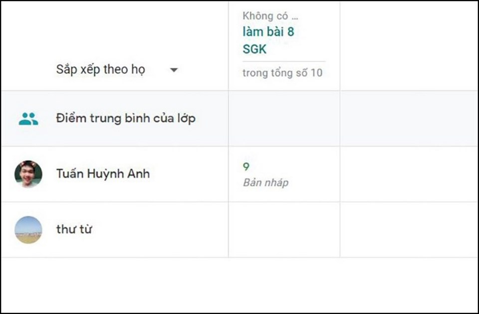 - Xem điểm: Tại đây, bạn có thể xem tổng hợp điểm số của tất cả học sinh trong lớp, dựa trên các bài tập đã được chấm điểm.