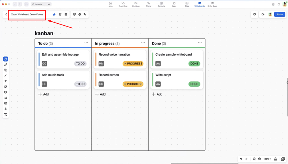 Bạn có thể đổi tên whiteboard để dễ quản lý: