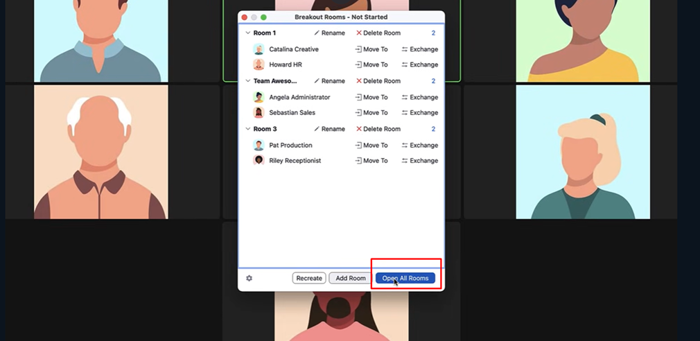 Nhấn Open All Rooms để bắt đầu thảo luận