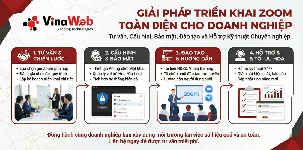 Vinagroup cung cấp dịch vụ triển khai Zoom bản quyền trọn gói, hỗ trợ:
